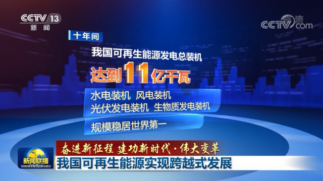 十年間,我國可再生能源發(fā)電總裝機(jī)達(dá)到11億千瓦,水電、風(fēng)電、光伏發(fā)電、生物質(zhì)發(fā)電裝機(jī)規(guī)模穩(wěn)居世界第一。其中,風(fēng)電光伏并網(wǎng)裝機(jī)合計6.7億千瓦,是2012年的近90倍。