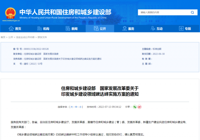 印發(fā)城鄉(xiāng)建設(shè)領(lǐng)域碳達(dá)峰實(shí)施方案的通知
