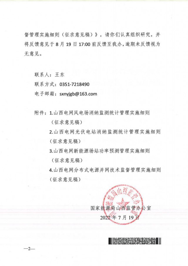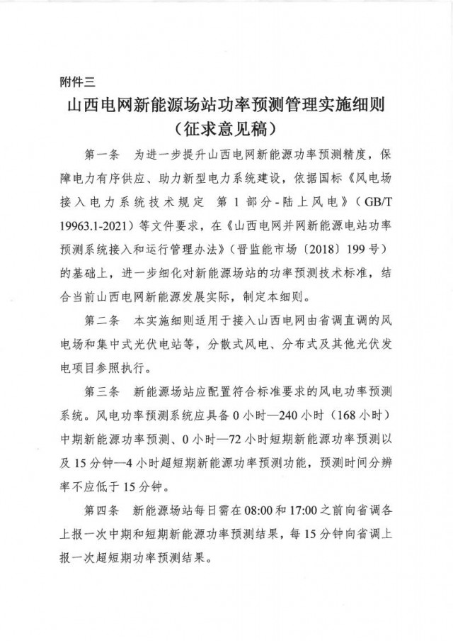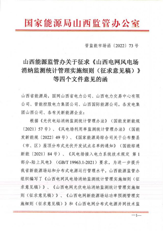 7月26日,山西能源監(jiān)管辦關(guān)于征求《山西電網(wǎng)風(fēng)電消納監(jiān)測統(tǒng)計(jì)管理實(shí)施細(xì)則(征求意見稿)》等四個文件意見的函,包含《山西電網(wǎng)光伏電站消納監(jiān)測統(tǒng)計(jì)管理實(shí)施細(xì)則(征求意見稿)》印發(fā),意見稿指出,本實(shí)施細(xì)則適用于并入山西電網(wǎng)、由省電力調(diào)控中心(以下簡稱“省調(diào)”)直接調(diào)度的集中式光伏電站,地市、縣級調(diào)度機(jī)構(gòu)調(diào)管的光伏電站、分布式等其他光伏發(fā)電項(xiàng)目參照執(zhí)行。