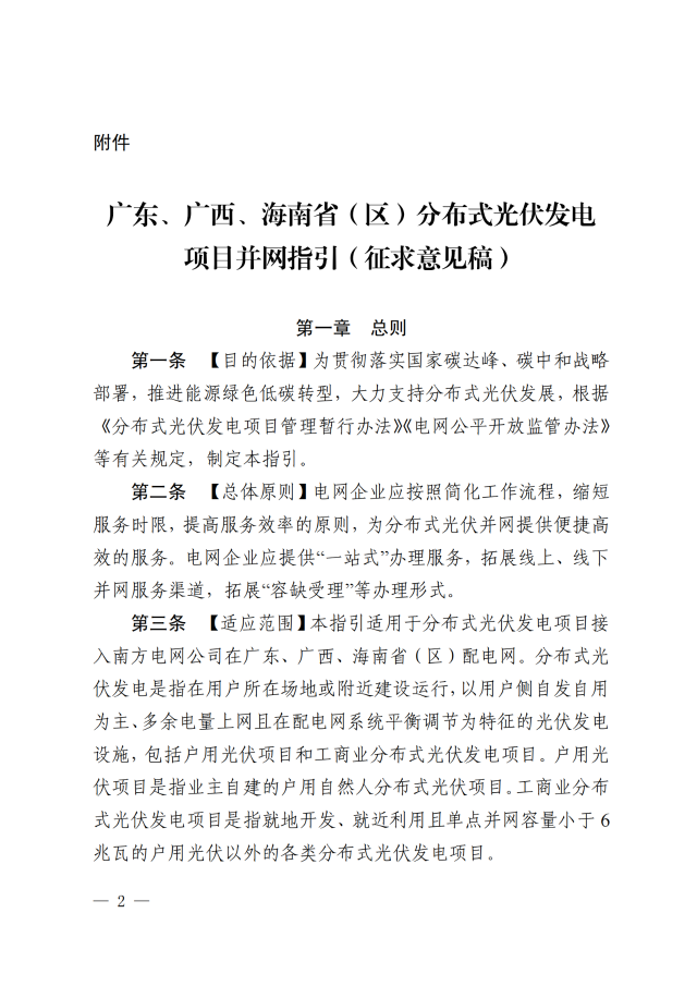 8月3日,國家能源局南方監(jiān)管局印發(fā)了關于公開征求《廣東、廣西、海南省(區(qū))分布式光伏發(fā)電項目并網(wǎng)指引(征求意見稿)》意見的通告。意見稿中對接入南方電網(wǎng)公司廣東、廣西、海南省(區(qū))配電網(wǎng)的分布式光伏發(fā)電項目進行了并網(wǎng)指引。