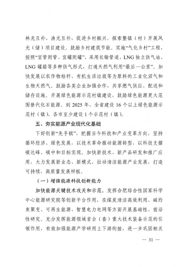 實施“光伏+”綜合利用工程促進鄉(xiāng)村振興。建設(shè) 16 個以上綠色能源示范村(鎮(zhèn)),各市至少建設(shè) 1 個示范村(鎮(zhèn))。