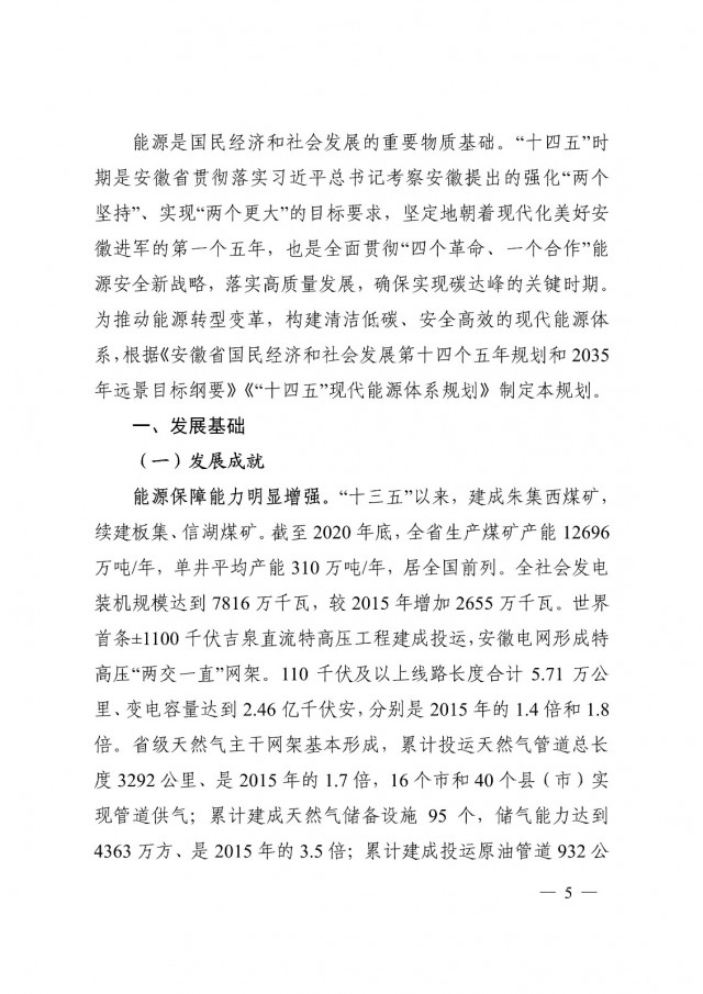 8月1日,安徽省發(fā)展改革委、安徽省能源局印發(fā)了《安徽省能源發(fā)展“十四五”規(guī)劃》。