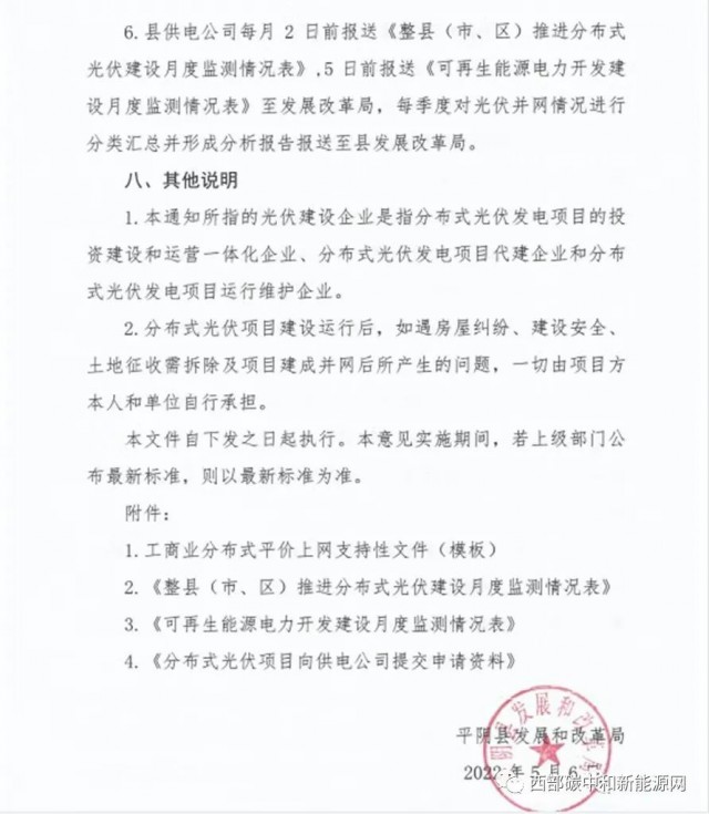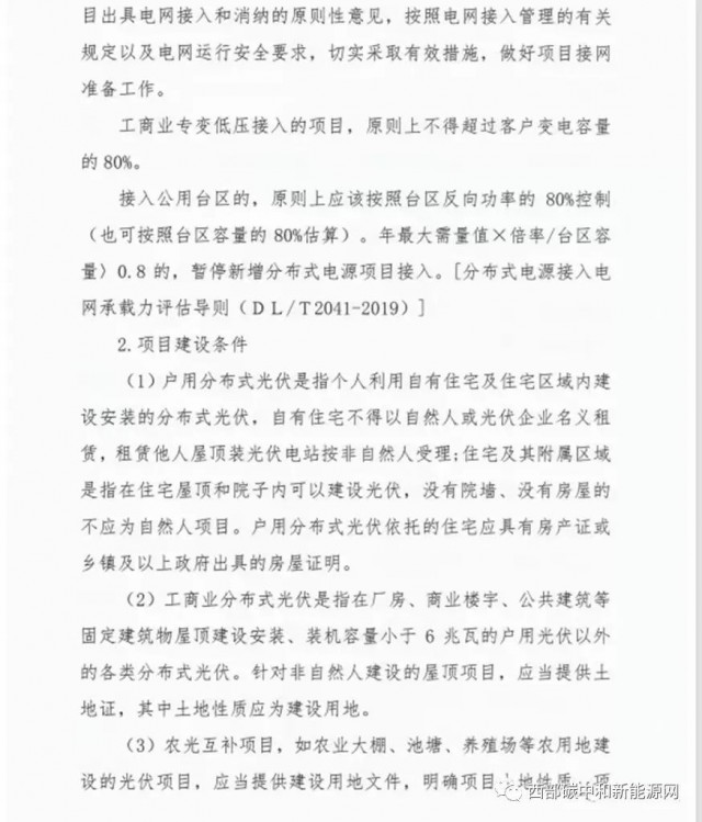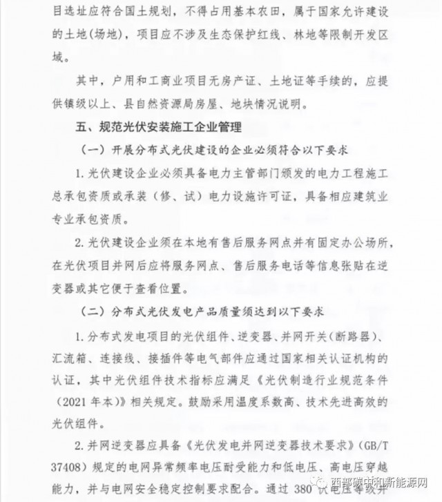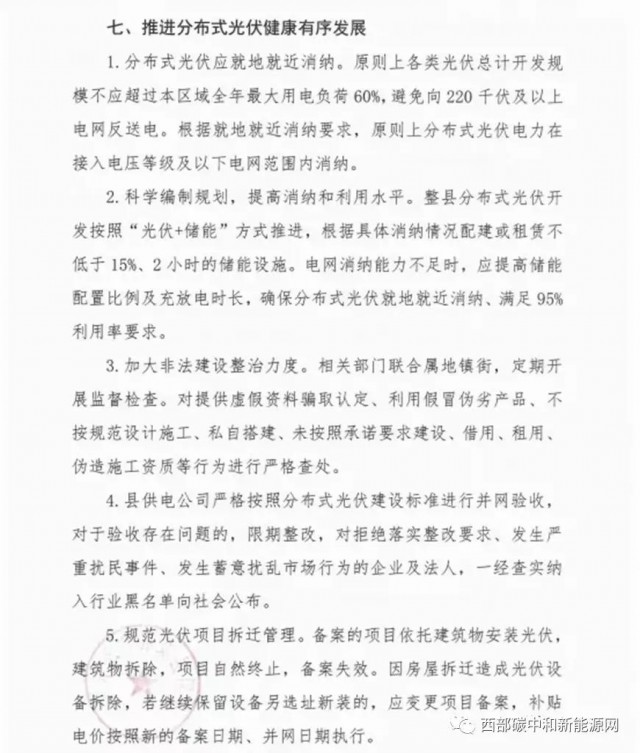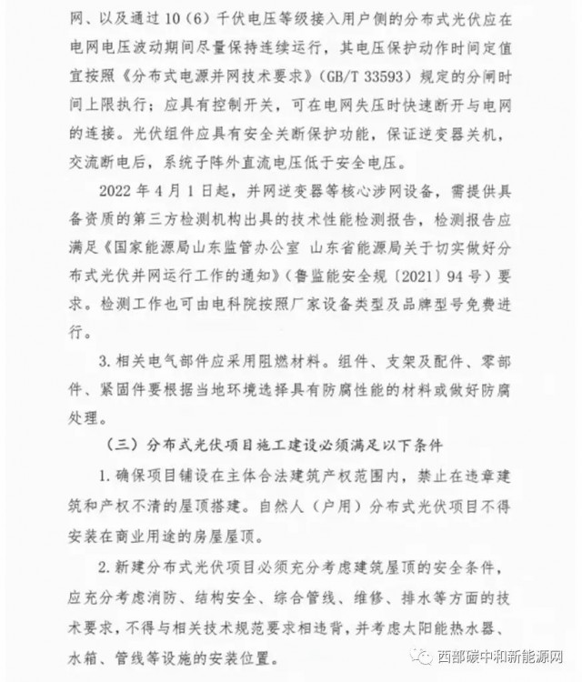 此外,整縣分布式開發(fā)按照“光伏+儲能”方式推進,根據具體消納情況配建或租賃不低于15%、2小時的儲能設施。電網消納能力不足時,應提高儲能配置比例及充放電時長,確保分布式光伏就地就近消納、滿足95%利用率要求。