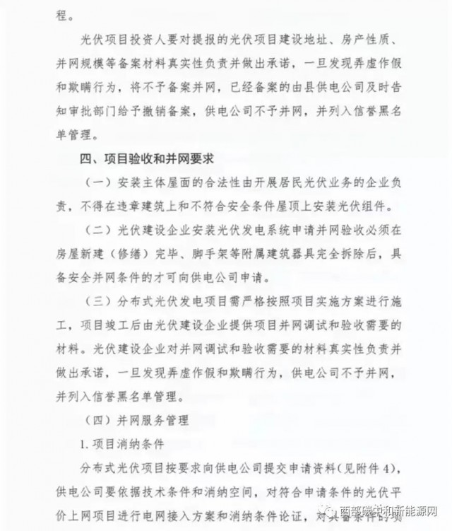 山東省濟南市平陰縣發(fā)改局印發(fā)《關于進一步加強分布式光伏項目備案、建設及并網管理的意見》,文件提出分布式光伏應就地就近消納。原創(chuàng)上各類光伏總計開發(fā)規(guī)模不應超過本區(qū)域全年最大用電負荷60%,避免向220千伏及以上電網反送電。根據就地就近消納要求,原則上分布式光伏電力在接入電壓等級及以下電網范圍內消納。