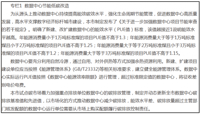 第三章 全面推進(jìn)綠色低碳循環(huán)發(fā)展將應(yīng)對氣候變化和節(jié)能作為推進(jìn)高質(zhì)量發(fā)展的重要途徑,全面落實首都城市戰(zhàn)略定位,深入貫徹減量發(fā)展、綠色發(fā)展理念,統(tǒng)籌推進(jìn)產(chǎn)業(yè)結(jié)構(gòu)、能源結(jié)構(gòu)、城市功能綠色低碳轉(zhuǎn)型,加快釋放綠色發(fā)展新動能,有力促進(jìn)京津冀區(qū)域綠色發(fā)展。一、深度推動產(chǎn)業(yè)結(jié)構(gòu)優(yōu)化調(diào)整(一)系統(tǒng)推進(jìn)產(chǎn)業(yè)結(jié)構(gòu)升級積極發(fā)展科技含量高、資源消耗低、碳排放少的高精尖產(chǎn)業(yè),加快高耗能高排放生產(chǎn)制造企業(yè)及生產(chǎn)環(huán)節(jié)的退出及高耗能設(shè)備的淘汰,有序引導(dǎo)不符合首都功能定位的一般制造業(yè)轉(zhuǎn)移退出,嚴(yán)控、壓減在京石化生產(chǎn)規(guī)模和水泥產(chǎn)能。修訂并嚴(yán)格執(zhí)行新增產(chǎn)業(yè)禁止和限制目錄,按照先進(jìn)節(jié)能低碳標(biāo)準(zhǔn)設(shè)計準(zhǔn)入條件,堅決控制高耗能、高排放項目新建和改擴(kuò)建。強(qiáng)化環(huán)評、能評和碳評源頭協(xié)同控制,嚴(yán)格控制新建項目能耗和碳排放水平。以綠色技術(shù)創(chuàng)新引領(lǐng)高精尖產(chǎn)業(yè)發(fā)展,持續(xù)推進(jìn)綠色制造體系建設(shè),努力培育新能源、新材料、新能源汽車、燃料電池、氫能等產(chǎn)業(yè)新增長點。建設(shè)新能源產(chǎn)業(yè)集聚中心和產(chǎn)業(yè)化示范基地,提升產(chǎn)業(yè)鏈、供應(yīng)鏈現(xiàn)代化水平,積極創(chuàng)建國家綠色產(chǎn)業(yè)基地,打造具有國際競爭力的綠色產(chǎn)業(yè)集群。培育發(fā)展綠色智慧技術(shù)服務(wù)新業(yè)態(tài),為綠色低碳發(fā)展提供技術(shù)支持。到2025年,基本形成具有首都特點的現(xiàn)代化綠色經(jīng)濟(jì)體系。(三)持續(xù)推動產(chǎn)業(yè)綠色化改造對標(biāo)國際國內(nèi)先進(jìn)能效和碳排放水平,實施一批節(jié)能低碳技術(shù)改造項目。開展重點行業(yè)綠色化改造,推動燃?xì)怆姀S、燃?xì)忮仩t、工業(yè)窯爐、污水處理廠、數(shù)據(jù)中心等余熱余壓回收利用,加快實施道路照明節(jié)能改造,提升新建數(shù)據(jù)中心能效標(biāo)準(zhǔn),持續(xù)開展數(shù)據(jù)中心節(jié)能降碳改造。大力發(fā)展循環(huán)經(jīng)濟(jì),全面推行清潔生產(chǎn),推動資源綜合利用。開展市級以上園區(qū)綠色低碳循環(huán)改造,強(qiáng)化園區(qū)資源梯級利用和系統(tǒng)優(yōu)化?!笆奈濉睍r期制造業(yè)碳排放基本實現(xiàn)增減平衡,單位工業(yè)增加值能耗和二氧化碳排放分別下降12%以上和20%左右。二、深入推進(jìn)能源結(jié)構(gòu)低碳轉(zhuǎn)型大力推進(jìn)以電代煤,有序推進(jìn)以電代油、以電代氣,嚴(yán)控化石能源消費(fèi)增長,確保能源活動碳排放總量不超過“十三五”總體水平。加快削減工業(yè)用煤,現(xiàn)有燃煤機(jī)組作為應(yīng)急備用機(jī)組,有序推進(jìn)山區(qū)村莊煤改清潔能源,基本實現(xiàn)淺山區(qū)村莊“無煤化”,非應(yīng)急情況下基本不再使用煤炭,煤炭消費(fèi)總量控制在100萬噸以內(nèi)。推進(jìn)油品消費(fèi)總量穩(wěn)中有降,加快機(jī)動車電氣化替代,控制航空煤油過快增長??刂铺烊粴饫靡?guī)模,天然氣消費(fèi)總量控制在200億立方米左右。因地制宜發(fā)展本市可再生能源,大力發(fā)展光伏、地?zé)?,適度發(fā)展風(fēng)電和垃圾焚燒發(fā)電,促進(jìn)氫能示范應(yīng)用。推進(jìn)分布式發(fā)電就地并網(wǎng)使用,積極發(fā)展“新能源+儲能”“源網(wǎng)荷儲”和多能互補(bǔ)。按照“宜建盡建、應(yīng)用盡用”的原則,優(yōu)先使用可再生能源保障供給,完善可再生能源利用的基礎(chǔ)設(shè)施和產(chǎn)業(yè)配套,推動可再生能源、新技術(shù)與城市融合發(fā)展。2025年全市可再生能源比重達(dá)到14.4%以上。大力發(fā)展地?zé)峒盁岜谩⑻柲?、儲能蓄熱等清潔供熱模式?025年全市可再生能源供熱面積占比達(dá)到10%以上。(三)推動京津冀區(qū)域能源低碳轉(zhuǎn)型加強(qiáng)京津冀能源一體化發(fā)展,強(qiáng)化低碳能源開發(fā)合作。建設(shè)跨區(qū)域的電力、天然氣、油品等能源輸送通道,推進(jìn)區(qū)域內(nèi)能源基礎(chǔ)設(shè)施互聯(lián)互通。共同開發(fā)區(qū)域內(nèi)風(fēng)能和太陽能等資源,優(yōu)先安排可再生能源、清潔能源和高效電源上網(wǎng)。高標(biāo)準(zhǔn)建設(shè)張家口可再生能源示范區(qū)。促進(jìn)北京與河北新能源基地合作共建,加快西北、南部方向綠色電力輸送通道和配電調(diào)峰儲能設(shè)施建設(shè),切實提高本市綠色電力消納能力,2025年全市外調(diào)綠色電力力爭達(dá)到300億千瓦時。有序布局氫能產(chǎn)業(yè)發(fā)展,以科技創(chuàng)新為核心,強(qiáng)化政策引領(lǐng)和產(chǎn)業(yè)培育,驅(qū)動京津冀氫能產(chǎn)業(yè)協(xié)同發(fā)展,合力構(gòu)建氫能與燃料電池全產(chǎn)業(yè)鏈。(一)引領(lǐng)城市規(guī)劃建設(shè)綠色升級持續(xù)優(yōu)化城市功能布局,堅定不移疏解非首都功能,構(gòu)建推動減量發(fā)展的體制機(jī)制,合理控制開發(fā)強(qiáng)度,將綠色低碳理念納入城