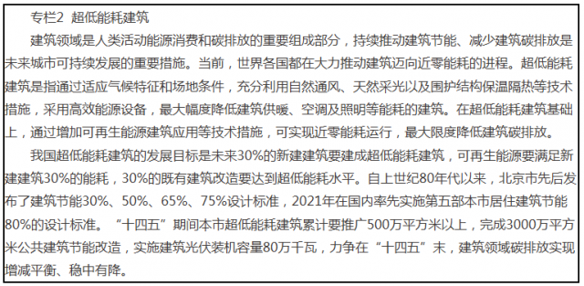 各區(qū)人民政府,市有關(guān)部門及相關(guān)單位:經(jīng)市政府同意,現(xiàn)將《北京市“十四五”時期應(yīng)對氣候變化和節(jié)能規(guī)劃》印發(fā)給你們,請認(rèn)真貫徹執(zhí)行。北京市“十四五”時期應(yīng)對氣候變化和節(jié)能規(guī)劃“中國將力爭2030年前實現(xiàn)碳達(dá)峰,2060年前實現(xiàn)碳中和”,習(xí)近平總書記這一莊嚴(yán)宣誓彰顯了中國積極應(yīng)對氣候變化、努力構(gòu)建人類命運(yùn)共同體、走綠色低碳發(fā)展道路的堅定決心,為我國今后一個時期應(yīng)對氣候變化和節(jié)能工作指明了方向。北京作為首都,要將碳達(dá)峰碳中和作為謀劃首都未來發(fā)展的重要目標(biāo)和展示城市國際形象的重要契機(jī),充分把握時代機(jī)遇,統(tǒng)籌處理好經(jīng)濟(jì)社會發(fā)展與節(jié)能降碳、積極應(yīng)對氣候變化的內(nèi)在聯(lián)系,深入推進(jìn)能源低碳革命,推動經(jīng)濟(jì)高質(zhì)量發(fā)展和生態(tài)環(huán)境高水平保護(hù)。按照國家和本市應(yīng)對氣候變化和節(jié)能工作總體部署,為努力實現(xiàn)碳排放達(dá)峰后穩(wěn)中有降,在碳達(dá)峰碳中和實踐進(jìn)程中探索出北京經(jīng)驗、貢獻(xiàn)北京力量,確保應(yīng)對氣候變化和節(jié)能工作繼續(xù)走在全國前列,特制定本規(guī)劃。本規(guī)劃主要依據(jù)《北京城市總體規(guī)劃(2016年-2035年)》《北京市國民經(jīng)濟(jì)和社會發(fā)展第十四個五年規(guī)劃和二〇三五年遠(yuǎn)景目標(biāo)綱要》《北京市“十四五”時期生態(tài)環(huán)境保護(hù)規(guī)劃》《北京市“十四五”時期能源發(fā)展規(guī)劃》等文件編制。“十三五”時期,本市深入推進(jìn)應(yīng)對氣候變化與節(jié)能工作,率先建立能源消費(fèi)和碳排放“雙控”機(jī)制,先行先試協(xié)同推進(jìn)能源節(jié)約、溫室氣體排放控制和污染防治工作,綜合運(yùn)用市場機(jī)制、標(biāo)準(zhǔn)引領(lǐng)、技術(shù)推廣、工程支撐、宣傳引導(dǎo)等多重手段,取得積極成效。規(guī)劃主要目標(biāo)均超額完成,能源活動碳排放進(jìn)入達(dá)峰平臺期,2020年能源消費(fèi)總量控制在6762萬噸標(biāo)準(zhǔn)煤,單位地區(qū)生產(chǎn)總值能耗和二氧化碳排放分別累計下降23%以上和26%以上,能源利用效率和碳排放強(qiáng)度保持全國省級地區(qū)最優(yōu)水平。(一)綠色低碳的高質(zhì)量發(fā)展格局基本形成深入落實城市戰(zhàn)略定位,率先樹立減量發(fā)展理念,經(jīng)濟(jì)高質(zhì)量發(fā)展邁出堅實步伐。發(fā)布北京市新增產(chǎn)業(yè)禁止和限制目錄,并動態(tài)調(diào)整。嚴(yán)格開展固定資產(chǎn)投資項目節(jié)能審查,從源頭禁止建設(shè)高耗能、高排放項目。累計淘汰退出2154家不符合首都功能的一般制造業(yè)和污染企業(yè),工業(yè)能耗和碳排放量持續(xù)下降。積極開展綠色制造體系創(chuàng)建,創(chuàng)建國家級綠色工廠67家。金融、信息、科技等現(xiàn)代服務(wù)業(yè)優(yōu)勢更加凸顯,數(shù)字經(jīng)濟(jì)增加值占地區(qū)生產(chǎn)總值比重超四成,全市地區(qū)生產(chǎn)總值先后跨越兩個萬億臺階,人均地區(qū)生產(chǎn)總值和全員勞動生產(chǎn)率保持全國領(lǐng)先。大幅減少煤炭用量,平原地區(qū)基本實現(xiàn)無煤化,全市煤炭消費(fèi)總量由2015年的1165萬噸削減到2020年的135萬噸,煤炭占能源消費(fèi)總量的比重下降至1.5%。天然氣消費(fèi)占比上升到37.2%,電力消費(fèi)占比為27.8%,實現(xiàn)了能源結(jié)構(gòu)優(yōu)化轉(zhuǎn)型,化石能源內(nèi)部清潔化調(diào)整基本完成。因地制宜發(fā)展光伏、風(fēng)電、地?zé)岬瓤稍偕茉?,積極增加外調(diào)綠電,制定實施強(qiáng)有力的光伏、風(fēng)電支持政策,可再生能源占比達(dá)到10.4%。(三)重點領(lǐng)域節(jié)能降碳效果全面顯現(xiàn)積極推廣綠色建筑,累計建設(shè)綠色建筑1.28億平方米,示范推廣超低能耗建筑53萬平方米,穩(wěn)步推進(jìn)裝配式建筑發(fā)展,新建裝配式建筑面積累計超過5400萬平方米。大力發(fā)展低碳交通,軌道交通運(yùn)營里程達(dá)到726公里,新能源車輛達(dá)到40余萬輛。構(gòu)建市場導(dǎo)向的綠色技術(shù)創(chuàng)新體系,推廣200多項先進(jìn)適用節(jié)能技術(shù)產(chǎn)品,實施新一輪節(jié)能減排促消費(fèi)政策,持續(xù)提升節(jié)能家電市場占有率。完成新一輪百萬畝造林綠化任務(wù)和森林碳匯提升工程,森林覆蓋率達(dá)到44.6%,森林碳匯儲量增加約200萬噸。成立市委生態(tài)文明建設(shè)委員會,下設(shè)大氣污染綜合治理及應(yīng)對氣候變化工作小組、推動形成綠色發(fā)展方式和生活方式工作小組,建立了各區(qū)和各部門相互協(xié)作的工作機(jī)制。將能源消費(fèi)和碳排放總量與強(qiáng)度目標(biāo)分解到各區(qū)、各行業(yè)主管部門,并按年度進(jìn)行考核。強(qiáng)化標(biāo)準(zhǔn)的規(guī)范約束作用,累計在建筑、交通、工業(yè)等領(lǐng)域出臺近百項節(jié)能降碳地方標(biāo)準(zhǔn)。支持推廣合同能源管理模式,持續(xù)開展能源審計、清潔生產(chǎn)審核等工作。加強(qiáng)能源和碳排放統(tǒng)計核算能力建設(shè),初步建立了市、區(qū)兩級碳排放核算體系。實施碳排放總