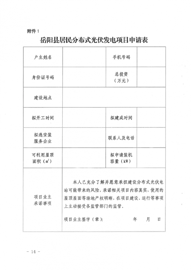 (一)《岳陽縣居民分布式光伏發(fā)電項(xiàng)目申請(qǐng)表》