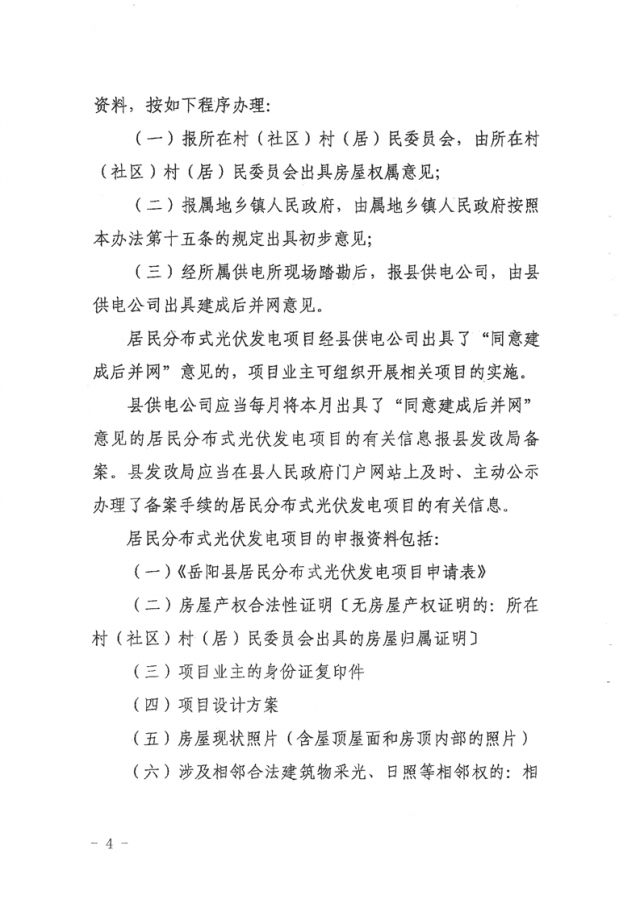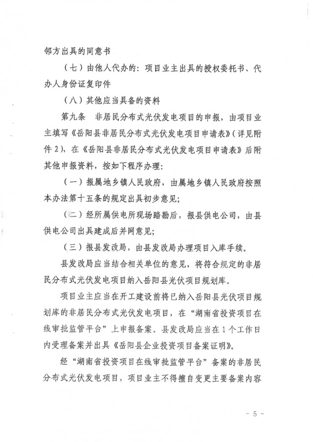 8月17日,湖南省岳陽市岳陽縣人民政府印發(fā)《岳陽縣分布式光伏發(fā)電項(xiàng)目管理暫行辦法》,文件對(duì)居民分布式光伏發(fā)電項(xiàng)目、非居民分布式光伏發(fā)電項(xiàng)目申報(bào)資料予以明確。