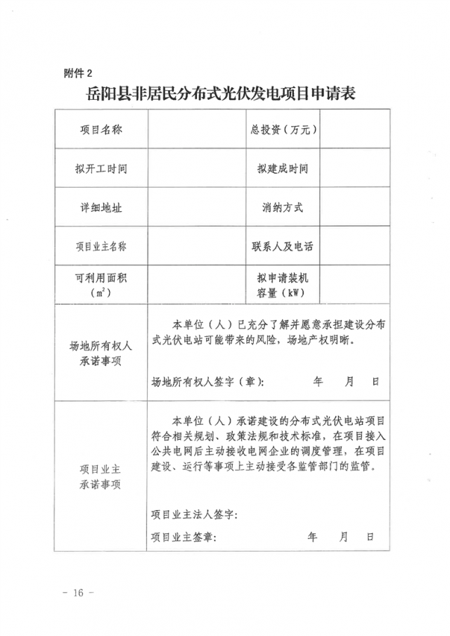 (一)《岳陽縣非居民分布式光伏發(fā)電項(xiàng)目申請(qǐng)表》