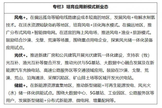 15.培育推廣應(yīng)用新模式新業(yè)態(tài)。推進源網(wǎng)荷儲一體化和多能互補,培育風電+、光伏+等多種應(yīng)用新模式新業(yè)態(tài),加快多層級多時間尺度多能互補協(xié)同優(yōu)化。