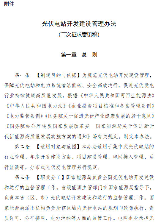 附件:光伏電站開發(fā)建設(shè)管理辦法(二次征求意見稿)