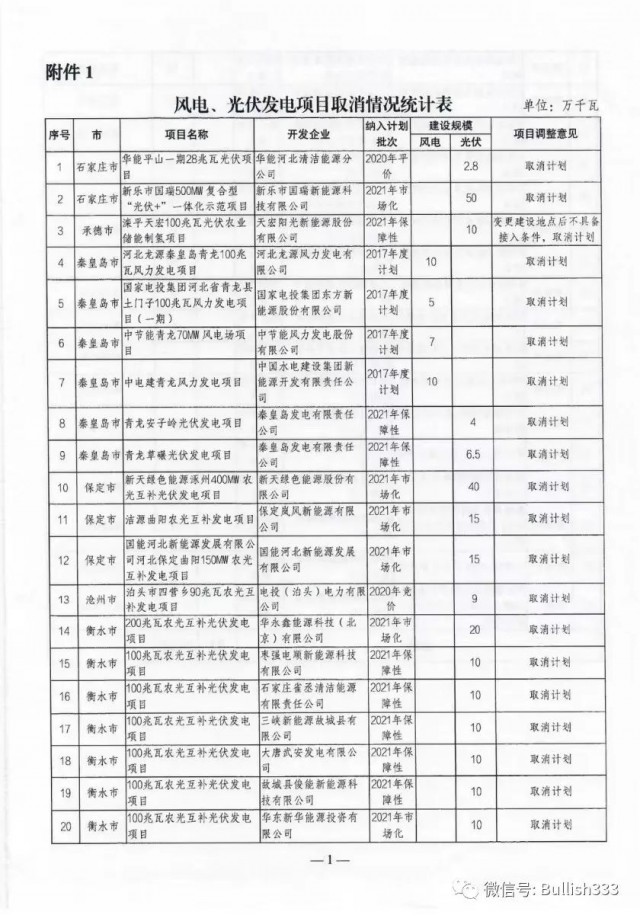 9月16日,河北發(fā)改委正式印發(fā)《關(guān)于公布風(fēng)電、光伏發(fā)電項目調(diào)整意見的通知》,對受用地政策調(diào)整、疫情等因素影響無法繼續(xù)實施或按期并網(wǎng)的項目進行了調(diào)整。