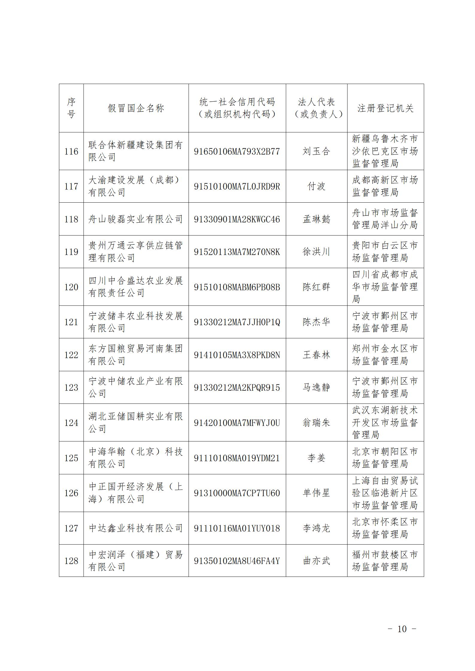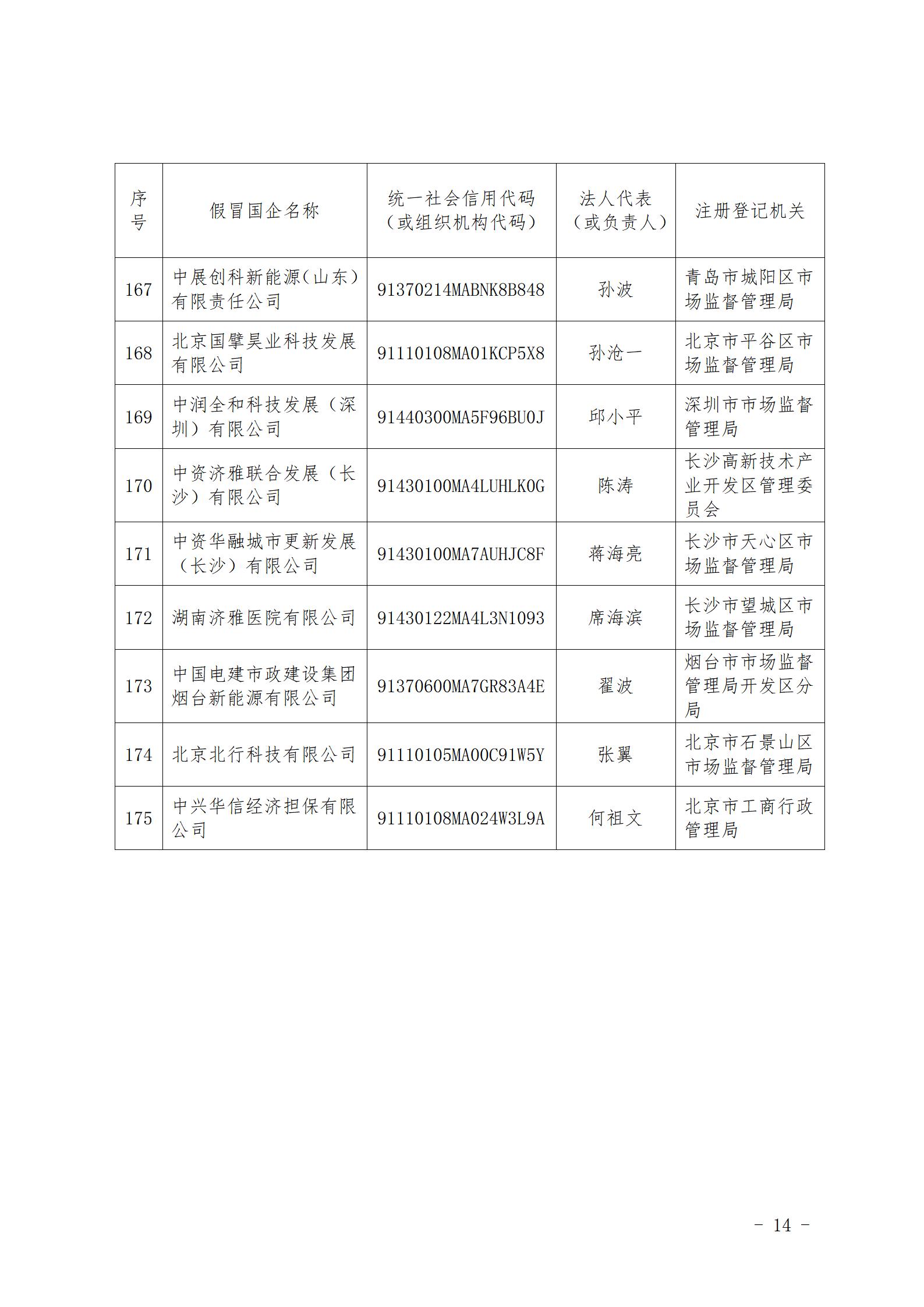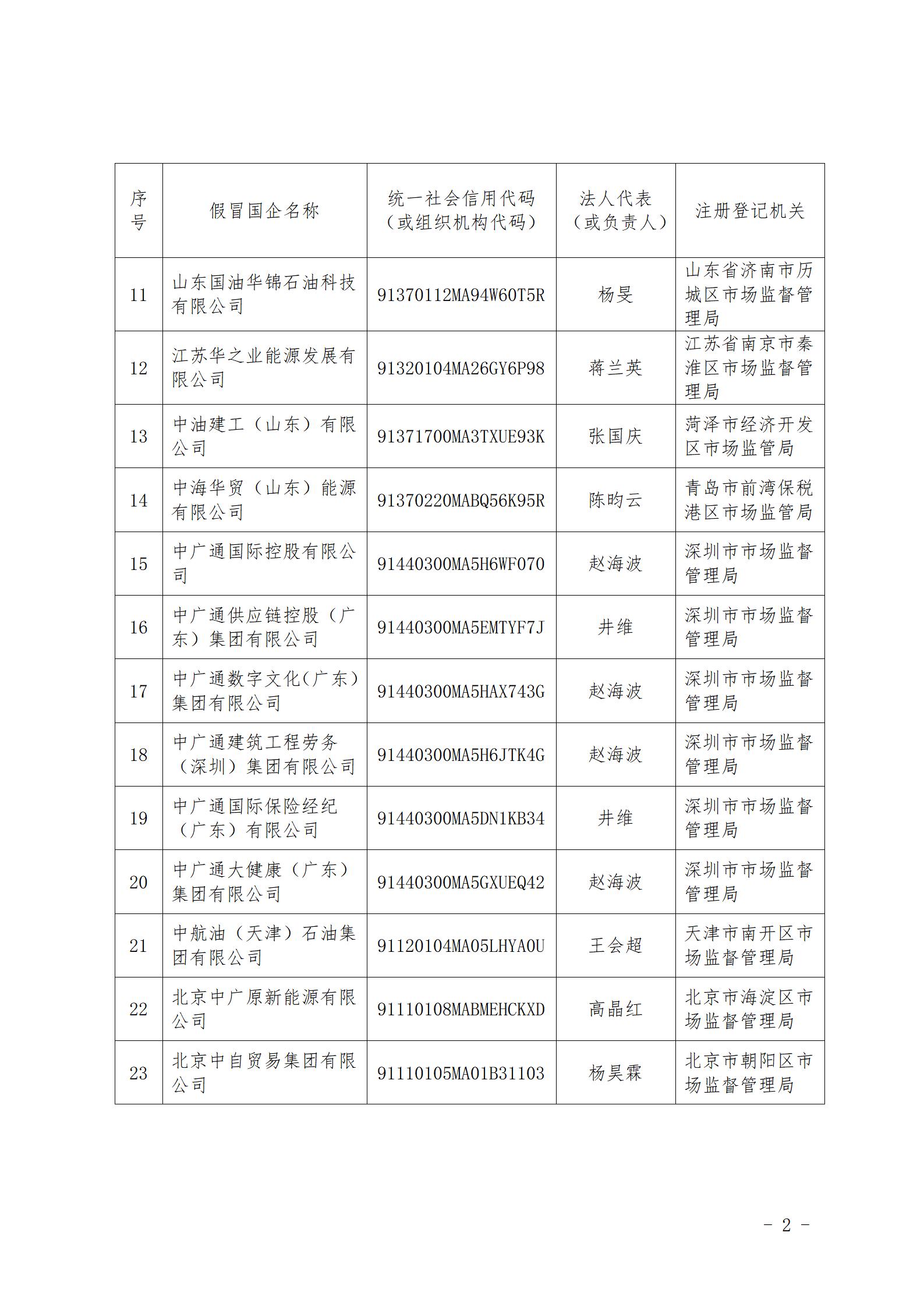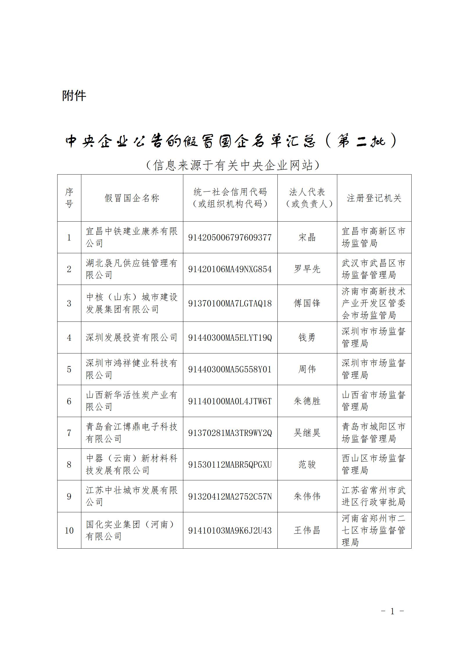 此次發(fā)布的第二批假冒中央企業(yè)名單共有175家企業(yè),包括中廣通國(guó)際控股有限公司、中氯集團(tuán)有限公司、中孚糧油產(chǎn)業(yè)集團(tuán)有限公司、中興華信經(jīng)濟(jì)擔(dān)保有限公司等。