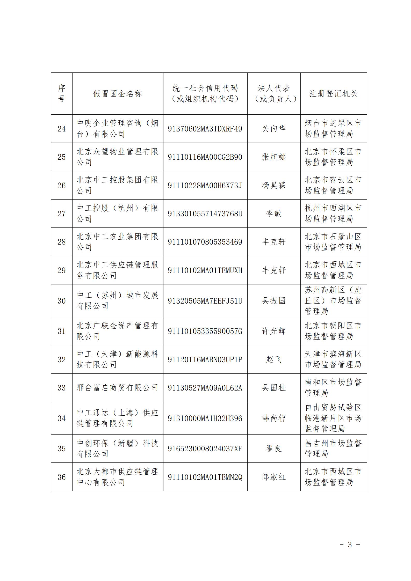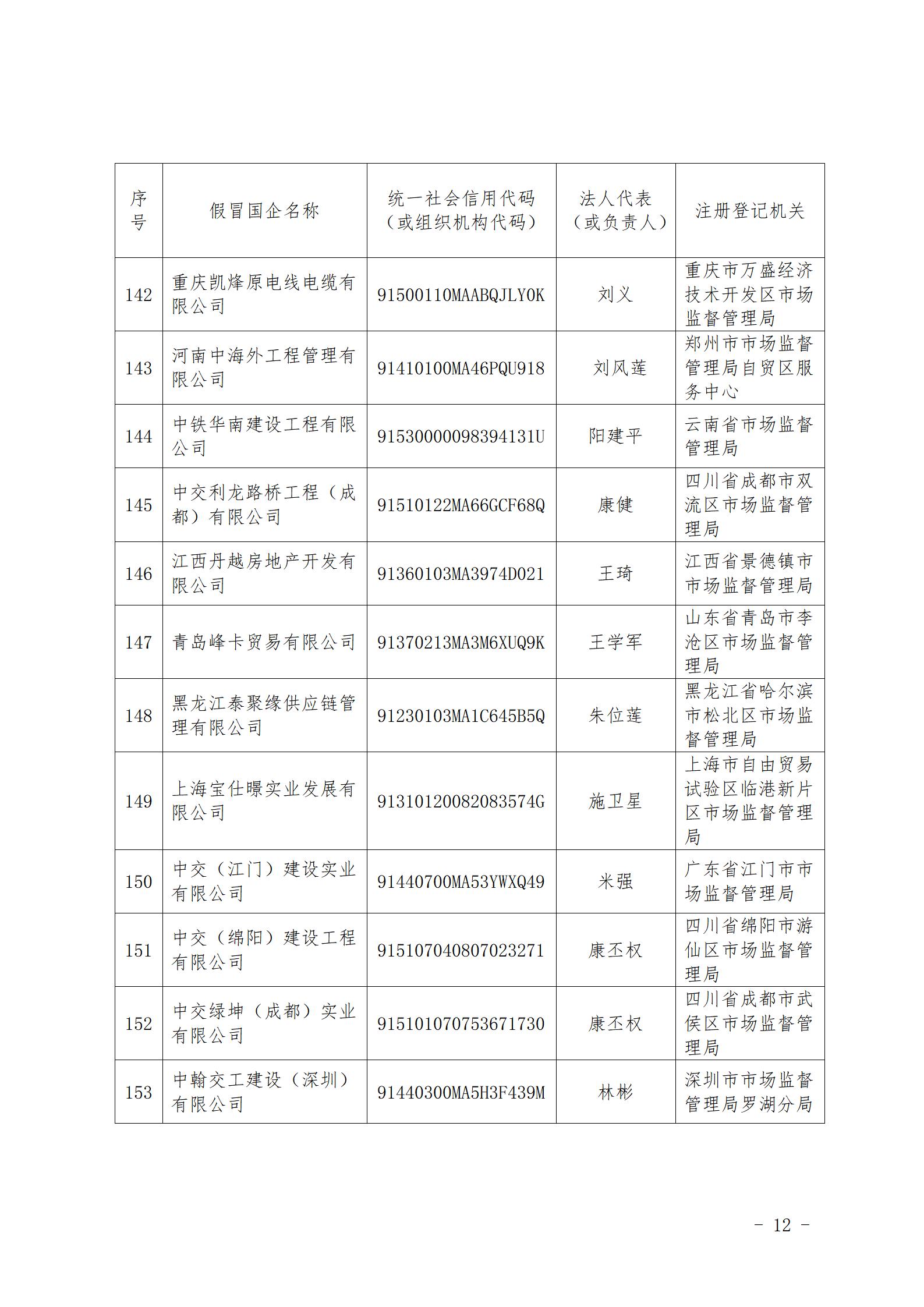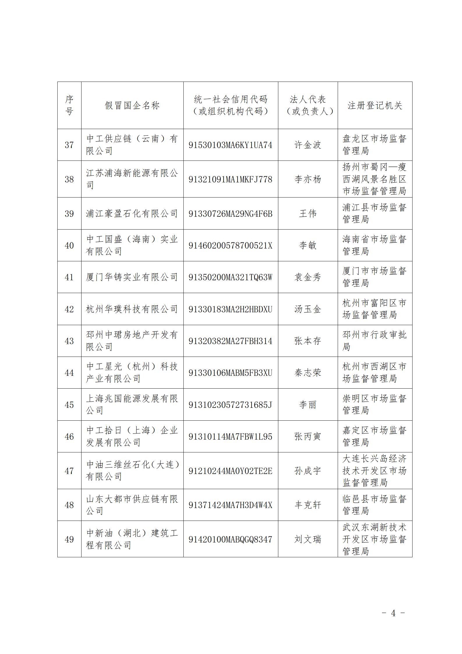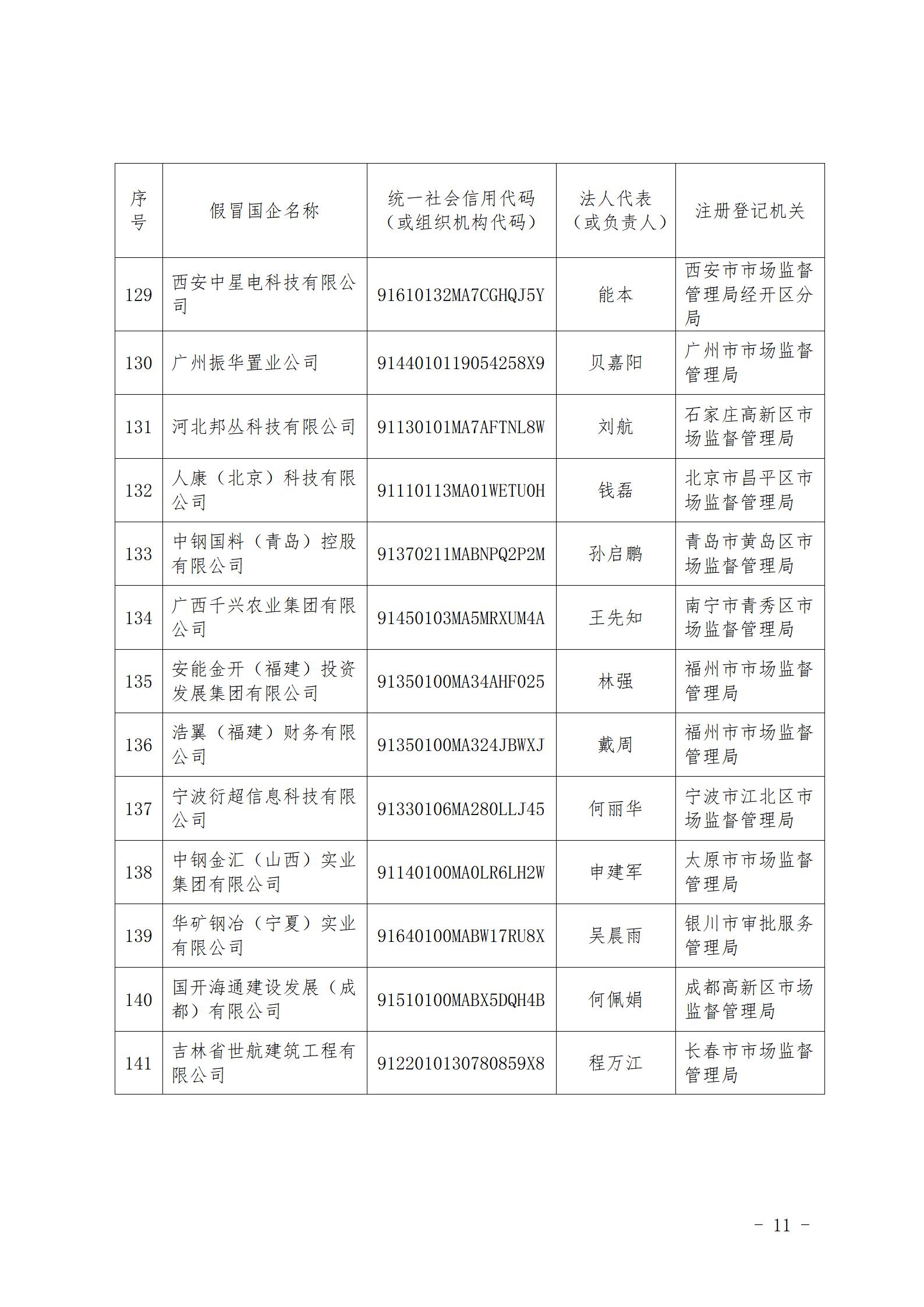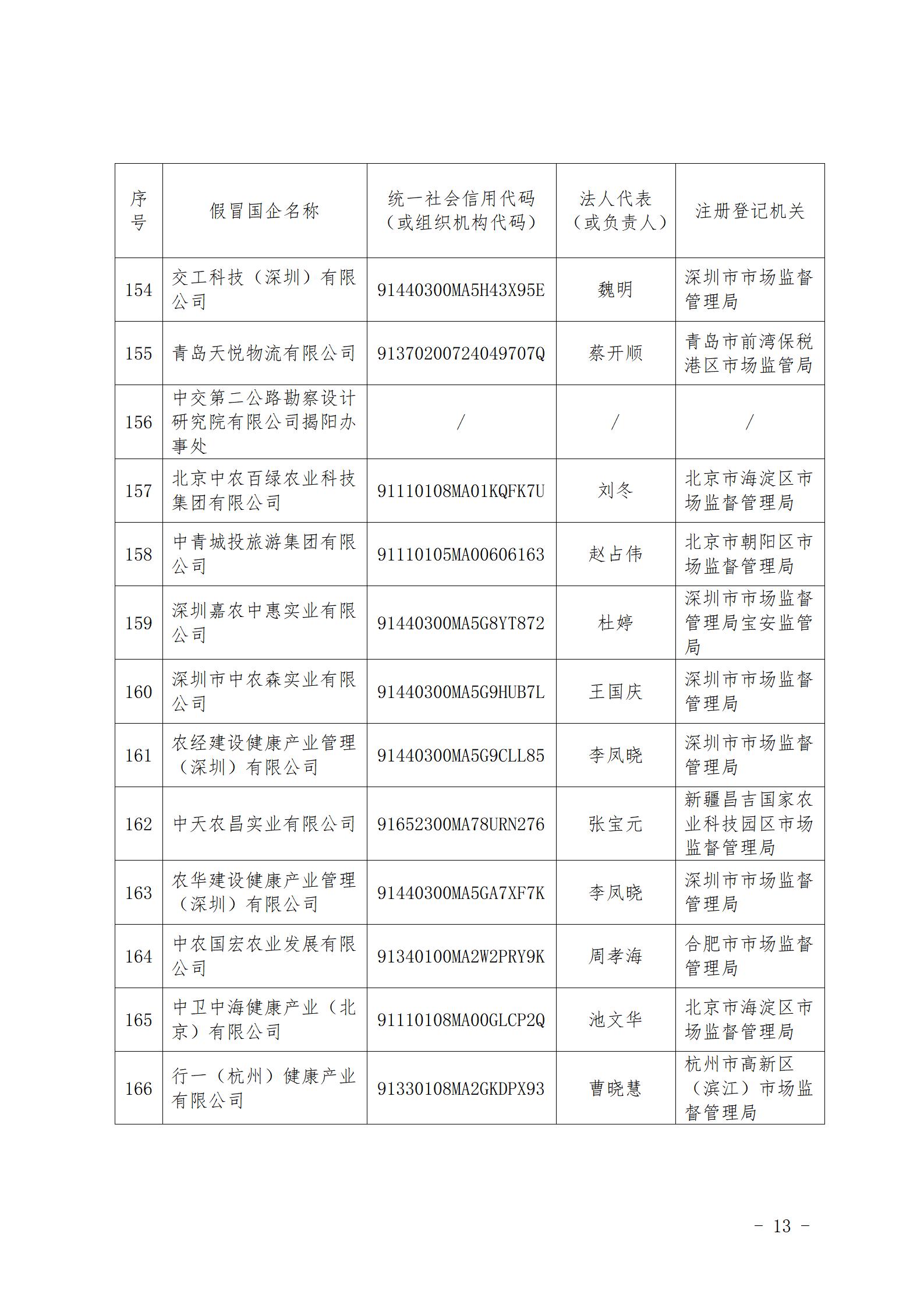此次發(fā)布的第二批假冒中央企業(yè)名單共有175家企業(yè),包括中廣通國(guó)際控股有限公司、中氯集團(tuán)有限公司、中孚糧油產(chǎn)業(yè)集團(tuán)有限公司、中興華信經(jīng)濟(jì)擔(dān)保有限公司等。