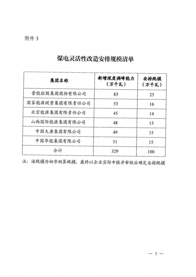 煤電靈活性改造調(diào)峰配套新能源項目的申報范圍則是2021年底前完成改造的煤電機組,安排規(guī)模則是按照新增深度調(diào)峰能力的30%確定。初步測算確定晉能、國家能源集團、京能、山西國際能源、大唐、華能6家企業(yè)獲得1GW煤電改造配套項目,具體仍需以企業(yè)實際申報規(guī)模為準。