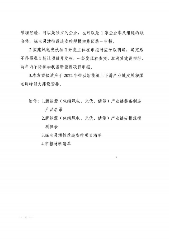 需要強調(diào)的是,產(chǎn)業(yè)配套項目允許企業(yè)單獨申報,也可由1家企業(yè)牽頭以聯(lián)合體形式申報,煤電改造配套則由集團統(tǒng)一申報。項目開發(fā)主體申報確認后不得私自轉(zhuǎn)讓項目開發(fā)權(quán),否則將取消指標,2年內(nèi)不得參與省內(nèi)新能源項目開發(fā)。