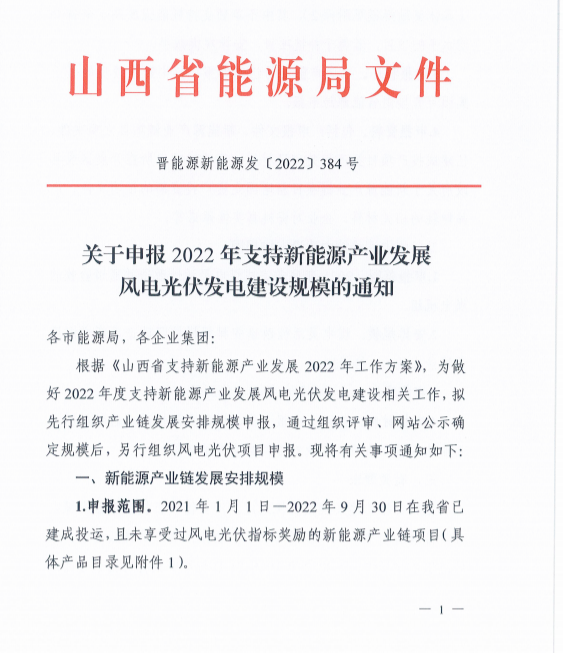 申報2022年支持新能源產(chǎn)業(yè)發(fā)展風電光伏發(fā)電建設規(guī)模通知