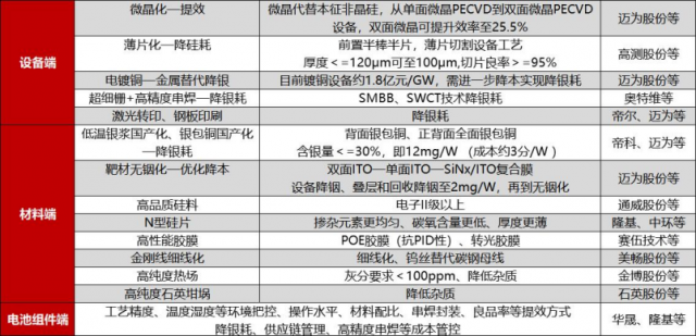 ●硅片、輔材、設(shè)備需要針對(duì)性開發(fā)以及提效降本。
