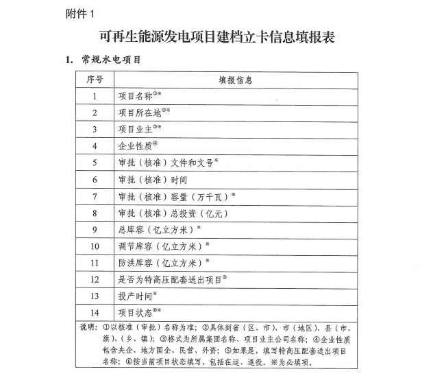 建檔立卡的對象為2022年7月31 日前并網(wǎng)在運的風電、 太陽能發(fā)電、常規(guī)水電、抽水蓄能和生物質(zhì)發(fā)電項目,后續(xù)并網(wǎng)項目及時建檔立卡。