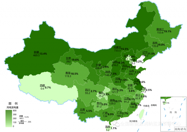 截至9月底各地區(qū)風(fēng)電累計裝機(jī)(萬千瓦)及占本地區(qū)總裝機(jī)比重