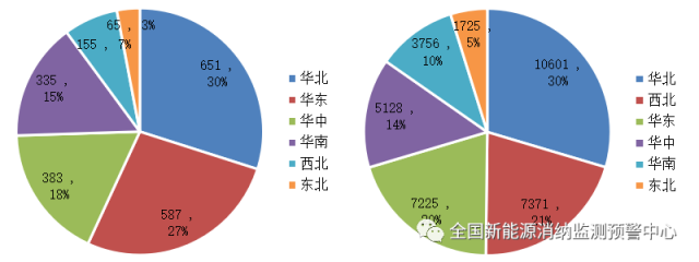 三季度各區(qū)域風(fēng)電新增(左)、累計(右)裝機(jī)(萬千瓦)