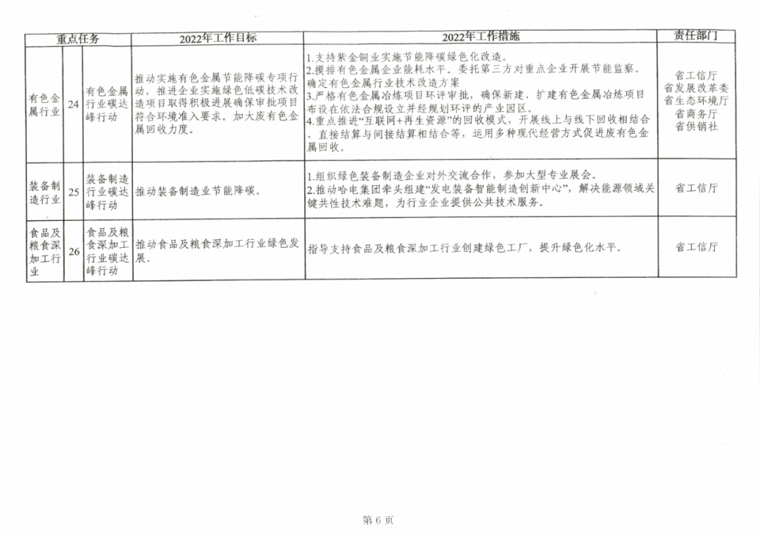 附件:《黑龍江省工業(yè)領(lǐng)域碳達(dá)峰實(shí)施方案》2022年工作計(jì)劃臺(tái)賬