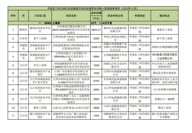 近日,江西省可再生能源信息中心發(fā)布了開發(fā)區(qū)三年行動計劃及整縣開發(fā)試點屋頂光伏納入優(yōu)選清單。