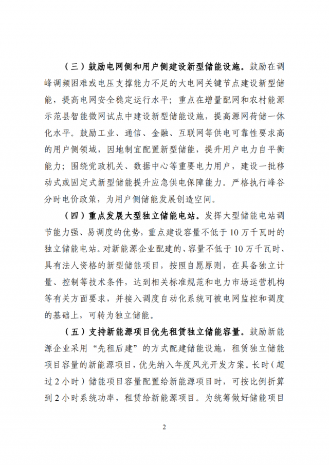 二、鼓勵新能源企業(yè)采用“先租后建”的方式配建儲能設(shè)施,租賃獨(dú)立儲能項(xiàng)目容量的的新能源項(xiàng)目,優(yōu)先納入年度風(fēng)光開發(fā)方案。