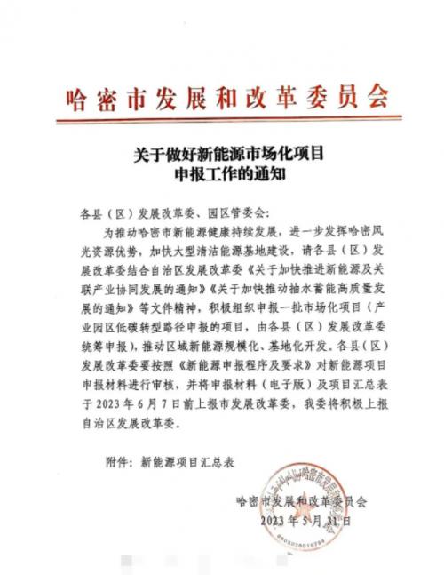 《通知》指出,為推動(dòng)哈密市新能源健康持續(xù)發(fā)展,進(jìn)一步發(fā)揮哈密風(fēng)光資源優(yōu)勢(shì),加快大型清潔能源基地建設(shè),請(qǐng)各縣(區(qū))發(fā)展改革委結(jié)合自治區(qū)發(fā)展改革委《關(guān)于加快推進(jìn)新能源及關(guān)聯(lián)產(chǎn)業(yè)協(xié)同發(fā)展的通知》《關(guān)于加快推動(dòng)抽水蓄能高質(zhì)量發(fā)展的通知》等文件精神,積極組織申報(bào)一批市場(chǎng)化項(xiàng)目(產(chǎn)業(yè)園區(qū)低碳轉(zhuǎn)型路徑申報(bào)的項(xiàng)目,由各縣(區(qū))發(fā)展改革委統(tǒng)籌申報(bào)),推動(dòng)區(qū)域新能源規(guī)?;⒒鼗_發(fā)。