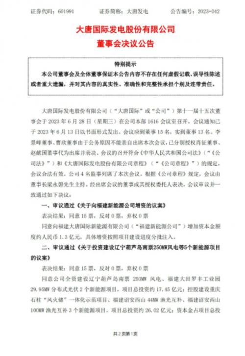 根據(jù)公開資料,大唐國際發(fā)電股份有限公司是中國大唐集團公司控股的中外合資企業(yè),2021年,托電、蔚縣基地合計3GW項目獲得國家第一批大型風(fēng)光基地批復(fù)。