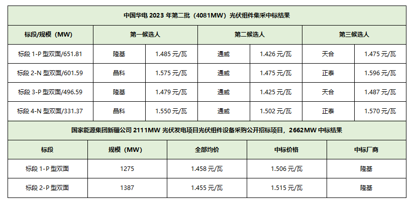 當項目落地不再受制于組件價格,終端發(fā)電企業(yè)將更關注資產(chǎn)安全伴生的穩(wěn)定收益,“低價”已不是它們關注的主要判斷因素。近期中國華電2023年4081MW光伏組件集采、國家能源集團新疆公司2111MW光伏發(fā)電項目組件設備采購招標結果印證了這種趨勢。