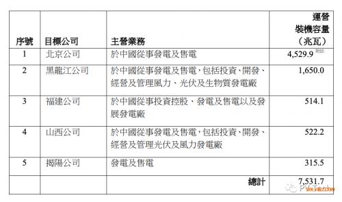 據(jù)悉,目標公司I及目標公司II主要從事清潔能源發(fā)電,主要包括風(fēng)力發(fā)電及光伏發(fā)電。收購事項涉及收購總?cè)萘繛?,268.3兆瓦(包括已投運7,531.7兆瓦,在建1,736.6兆瓦)的發(fā)電項目。