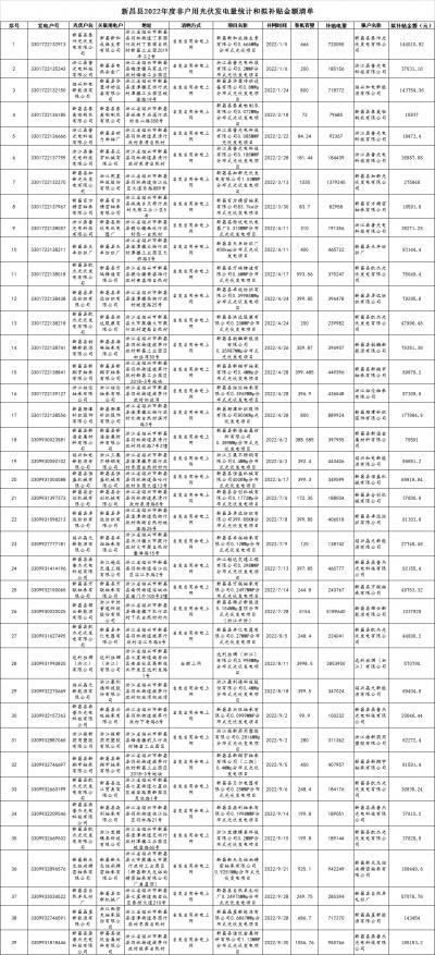 10月25日,浙江新昌縣發(fā)改局發(fā)布《關(guān)于2022年度全縣非戶用光伏發(fā)電量統(tǒng)計(jì)及擬補(bǔ)貼金額的公示》。本次擬補(bǔ)貼項(xiàng)目全部為戶用分布式項(xiàng)目,總計(jì)39個(gè)項(xiàng)目,容量24.14MW,補(bǔ)貼金額總計(jì)456.105萬元。
