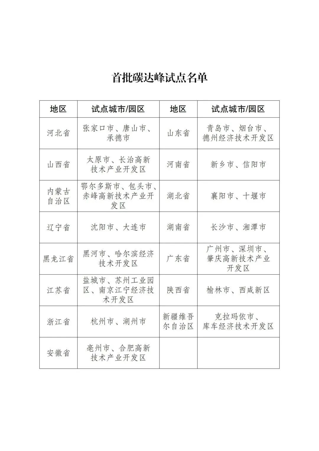12月6日,國家發(fā)展改革委辦公廳發(fā)布關于印發(fā)首批碳達峰試點名單的通知。確定張家口市等25個城市、長治高新技術產(chǎn)業(yè)開發(fā)區(qū)等10個園區(qū)為首批碳達峰試點城市和園區(qū)。