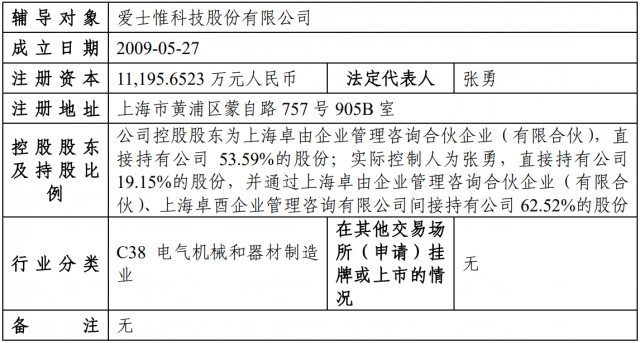12月26日,中國(guó)證監(jiān)會(huì)官網(wǎng)顯示,愛士惟科技股份有限公司已完成首次公開發(fā)行股票并上市輔導(dǎo)備案,輔導(dǎo)機(jī)構(gòu)為華泰證券。