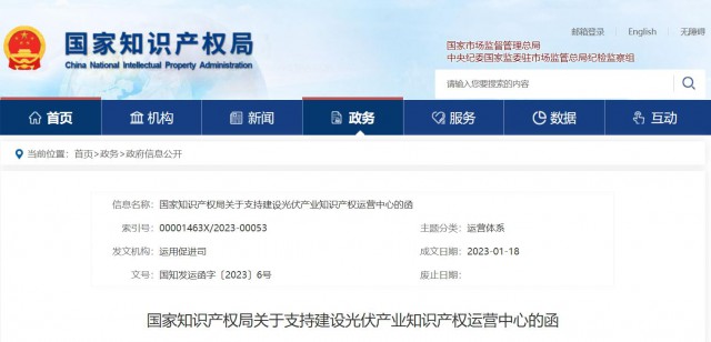 《關(guān)于申請(qǐng)支持北京晶澳太陽(yáng)能光伏科技有限公司建設(shè)光伏產(chǎn)業(yè)知識(shí)產(chǎn)權(quán)運(yùn)營(yíng)中心的請(qǐng)示》(京知局〔2022〕163號(hào))收悉。光伏產(chǎn)業(yè)是典型的國(guó)家戰(zhàn)略性新興產(chǎn)業(yè),發(fā)展光伏產(chǎn)業(yè)是實(shí)現(xiàn)我國(guó)“雙碳”目標(biāo)的重要途徑,對(duì)調(diào)整能源結(jié)構(gòu)、推進(jìn)能源生產(chǎn)和消費(fèi)方式變革、促進(jìn)生態(tài)文明建設(shè)具有重要戰(zhàn)略意義。我局支持北京晶澳太陽(yáng)能光伏科技有限公司建設(shè)光伏產(chǎn)業(yè)知識(shí)產(chǎn)權(quán)運(yùn)營(yíng)中心(以下簡(jiǎn)稱運(yùn)營(yíng)中心)。希望運(yùn)營(yíng)中心緊密圍繞增強(qiáng)產(chǎn)業(yè)鏈供應(yīng)鏈穩(wěn)定性和競(jìng)爭(zhēng)力,融合相關(guān)知識(shí)產(chǎn)權(quán)服務(wù)資源,著力培育知識(shí)產(chǎn)權(quán)運(yùn)營(yíng)服務(wù)能力,促進(jìn)知識(shí)產(chǎn)權(quán)高質(zhì)量創(chuàng)造、高水平布局和高效益運(yùn)用,助推產(chǎn)業(yè)高質(zhì)量發(fā)展。