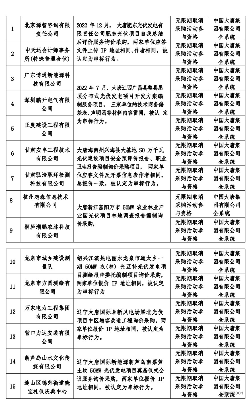 3月1日,大唐集團發(fā)布2023年第2批關(guān)于供應(yīng)商不良行為處理情況的公告,共有699家企業(yè)被點名。其中,包含12個光伏項目招標相關(guān)的26家供應(yīng)商被點名。