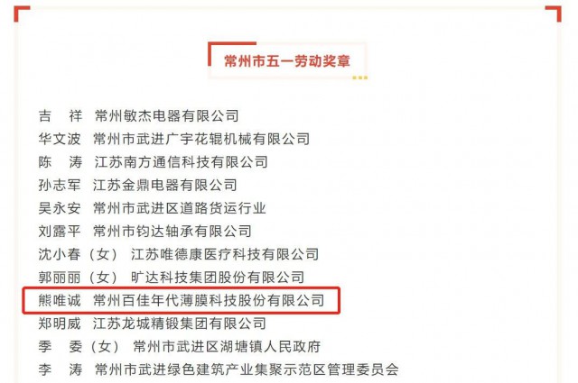 致敬勞動(dòng)者,奮進(jìn)新征程。勞動(dòng)節(jié)前夕,常州市舉行慶?!拔逡弧眹H勞動(dòng)節(jié)大會(huì),對(duì)為我市經(jīng)濟(jì)發(fā)展作出貢獻(xiàn)的先進(jìn)集體和先進(jìn)個(gè)人進(jìn)行表彰,動(dòng)員和號(hào)召全市廣大職工以先進(jìn)為標(biāo)桿,大力弘揚(yáng)勞模精神勞動(dòng)精神工匠精神,為建設(shè)“兩湖”創(chuàng)新區(qū)、打造“新能源之都”、決勝“萬億之城”作出新的更大貢獻(xiàn)。會(huì)上,百佳年代新材料研究院研發(fā)總監(jiān)熊唯誠博士榮獲“常州市五一勞動(dòng)獎(jiǎng)?wù)隆睒s譽(yù)。