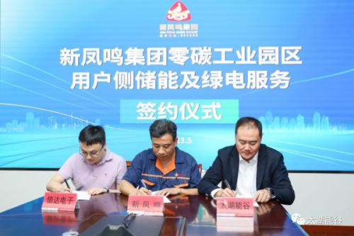2023年5月31日,長興太湖能谷科技有限公司與新鳳鳴集團股份有限公司、嘉興市信達電子科技有限公司正式簽署用戶側(cè)儲能及綠電服務(wù)合作協(xié)議。