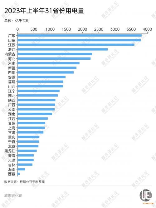 廣東、山東、江蘇全社會(huì)用電量在3000億千瓦時(shí)階段“三雄相爭(zhēng)”,浙江、內(nèi)蒙古和河北競(jìng)速2000億千瓦時(shí)階段,而剩下的河南、新疆等12個(gè)全社會(huì)用電量達(dá)到千億千瓦時(shí)的省份,只能爭(zhēng)奪剩下的4個(gè)席位。