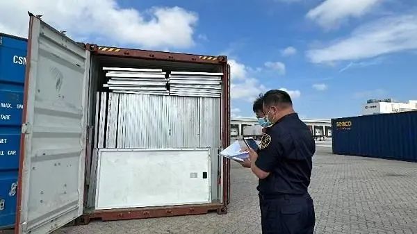 圖說:洋山海關(guān)在進口太陽能組件(舊)中查獲固廢。談鑫晨 攝