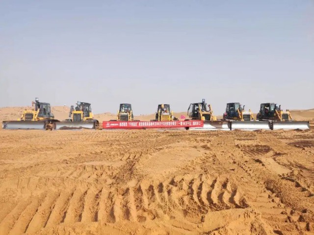 中核華興新能源建設鐵軍以鏗鏘步伐踏入無垠沙漠,將用辛勞和汗水開啟新能源建設新征程,鑄就綠色發(fā)展新豐碑,為圓滿完成國家能源大基地建設任務貢獻華興力量。