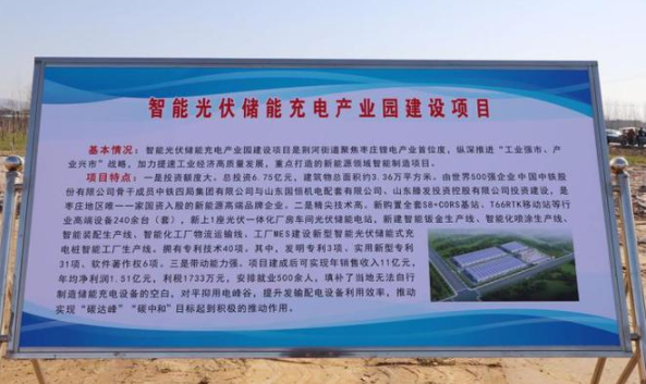 智能光伏儲(chǔ)能充電產(chǎn)業(yè)園建設(shè)項(xiàng)目是荊河街道聚焦棗莊鋰電產(chǎn)業(yè)首位度,縱深推進(jìn)“工業(yè)強(qiáng)市、產(chǎn)業(yè)興市”戰(zhàn)略,加力提速工業(yè)經(jīng)濟(jì)高質(zhì)量發(fā)展,重點(diǎn)打造的新能源領(lǐng)域智能制造項(xiàng)目。該項(xiàng)目有以下幾個(gè)特點(diǎn):一是投資額度大??偼顿Y6.75億元,建筑物總面積約3.36萬(wàn)平方米。由世界500強(qiáng)企業(yè)中國(guó)中鐵股份有限公司骨干成員中鐵四局集團(tuán)有限公司與山東國(guó)恒機(jī)電配套有限公司、山東滕發(fā)投資控股有限公司投資建設(shè),是棗莊地區(qū)唯一一家國(guó)資入股的新能源高端品牌企業(yè)。二是精尖技術(shù)高。新購(gòu)置全套S8+CORS基站、T66RTK移動(dòng)站等行業(yè)高端設(shè)備240余臺(tái)(套),新上1座光伏一體化廠房車間光伏儲(chǔ)能電站,新建智能鈑金生產(chǎn)線、智能化噴涂生產(chǎn)線、智能裝配生產(chǎn)線、智能化工廠物流運(yùn)輸線、工廠MES建設(shè)新型智能光伏儲(chǔ)能式充電樁智能工廠生產(chǎn)線。擁有專利技術(shù)40項(xiàng)。其中,發(fā)明專利3項(xiàng)、實(shí)用新型專利31項(xiàng)、軟件著作權(quán)6項(xiàng)。三是帶動(dòng)能力強(qiáng)。項(xiàng)目建成后可實(shí)現(xiàn)年銷售收入11億元,年均凈利潤(rùn)1.51億元,利稅1733萬(wàn)元,安排就業(yè)500余人,填補(bǔ)了當(dāng)?shù)責(zé)o法自行制造儲(chǔ)能充電設(shè)備的空白,對(duì)平抑用電峰谷,提升發(fā)輸配電設(shè)備利用效率,推動(dòng)實(shí)現(xiàn)“碳達(dá)峰”“碳中和”目標(biāo)起到積極的推動(dòng)作用。