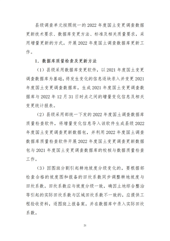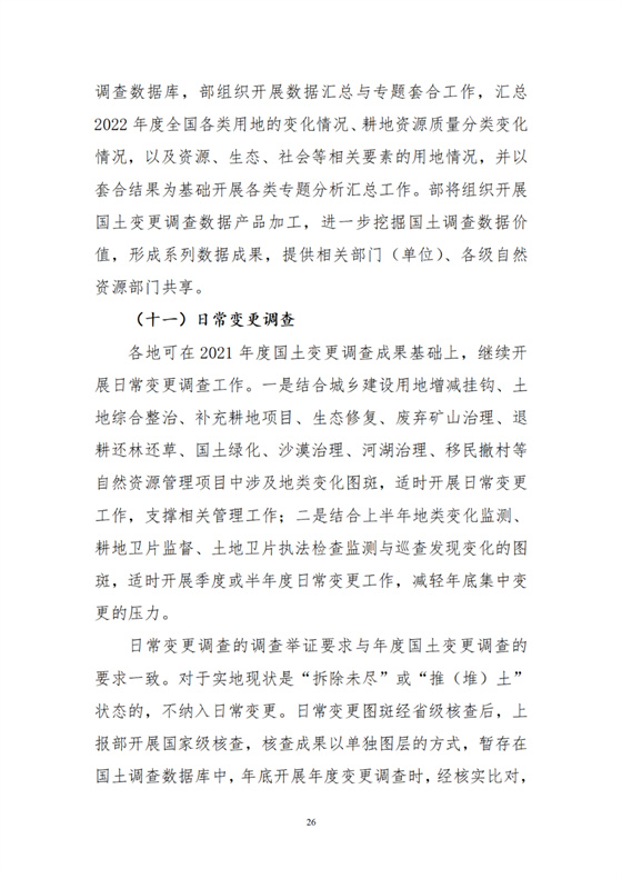 根據(jù)工作需要,部組織編制了《2022年度全國(guó)國(guó)土變更調(diào)查實(shí)施方案》,并對(duì)《年度國(guó)土變更調(diào)查技術(shù)規(guī)程》作了修訂,隨本通知一并印發(fā)執(zhí)行。
