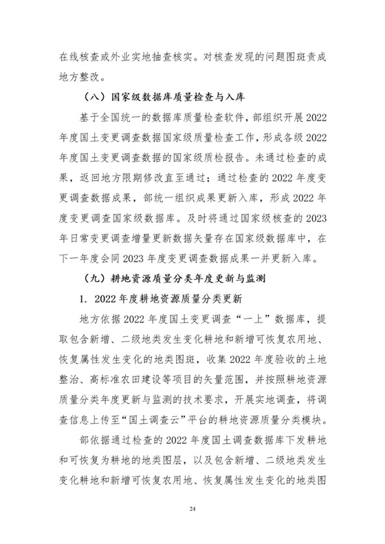 2023年6月15日前,部組織完成2022年度變更調(diào)查最終數(shù)據(jù)庫(kù)質(zhì)檢、更新入庫(kù)及數(shù)據(jù)匯總分析工作。同時(shí),下發(fā)2022年度耕地資源質(zhì)量分類更新涉及的相關(guān)圖層。