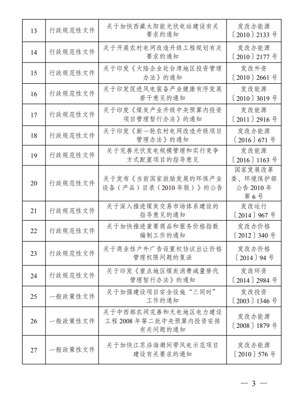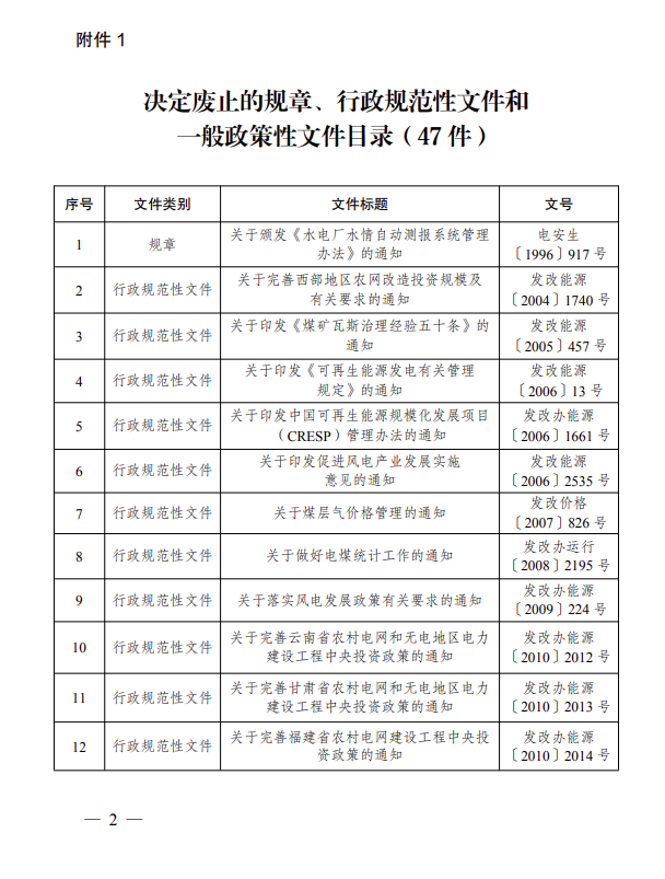 經(jīng)過清理,決定對47件規(guī)章、行政規(guī)范性和一般政策性文件予以廢止,其中包括《關(guān)于完善光伏發(fā)電規(guī)模管理和實(shí)行競爭方式配置項(xiàng)目的指導(dǎo)意見》等多項(xiàng)跟光伏、風(fēng)電能源領(lǐng)域有關(guān)文件。