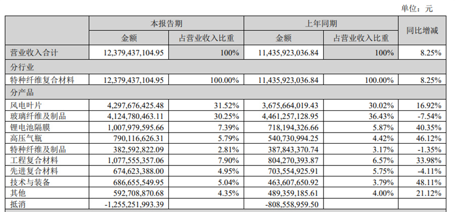 中材科技作為頭部葉片企業(yè),報告期內,合計銷售風電葉片9.6GW,同比增長27.4%(其中,中復連眾銷量2.3GW),實現(xiàn)風電葉片銷售收入43.0億元,歸母凈利潤3.5億元,毛利率提升至17.2%,同比提升11.3個百分點。