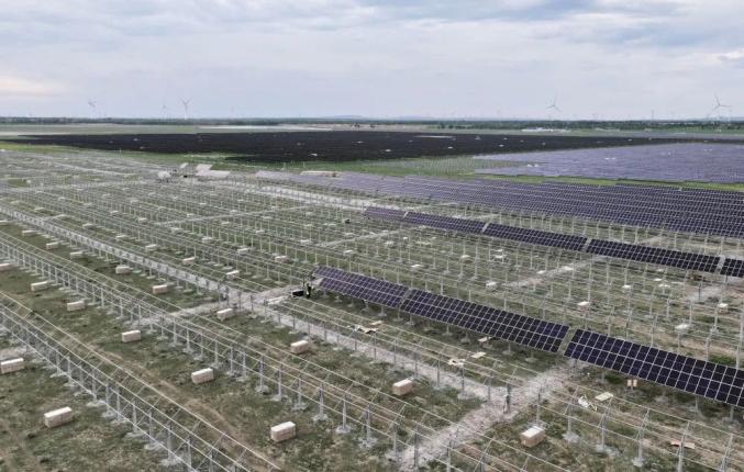 這是張家口市康保縣張紀(jì)鎮(zhèn)一處施工中的光伏發(fā)電場(chǎng)(7月11日攝,無(wú)人機(jī)照片)。