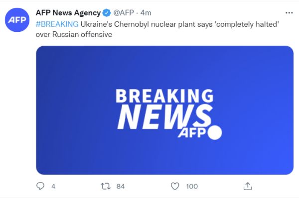 當(dāng)日,俄羅斯官方開(kāi)設(shè)的辟謠網(wǎng)站“與假消息作戰(zhàn)”發(fā)布文章,稱有媒體報(bào)道國(guó)際原子能機(jī)構(gòu)表示,切爾諾貝利核電站情況惡化的消息是假消息。真相是,他們只是在制造恐慌。