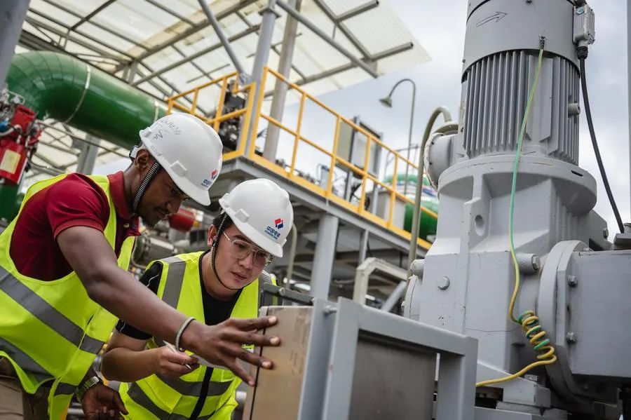 2023年5月26日,施工人員在位于肯尼亞納庫(kù)魯市的索西安地?zé)犭娬卷?xiàng)目建設(shè)現(xiàn)場(chǎng)檢查發(fā)電設(shè)施。新華社記者 王冠森 攝